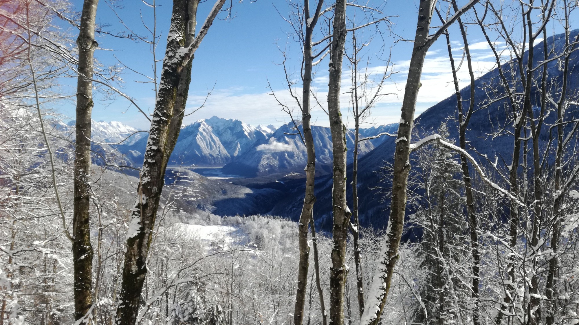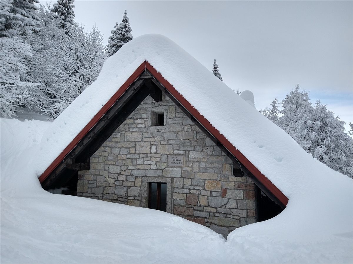 Il ritorno avviene lungo lo stesso tracciato dell’andata, attraversando boschi silenziosi ammantati di bianco, dove il tempo sembra rallentare e ogni dettaglio diventa più intenso: il scricchiolio della neve, l’aria frizzante, l’atmosfera ovattata della montagna invernale.