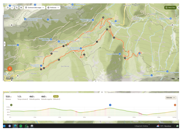 Media, il percorso si svolge su piste batture e sterrate, con brevi tratti di discesa moderatamente ripida